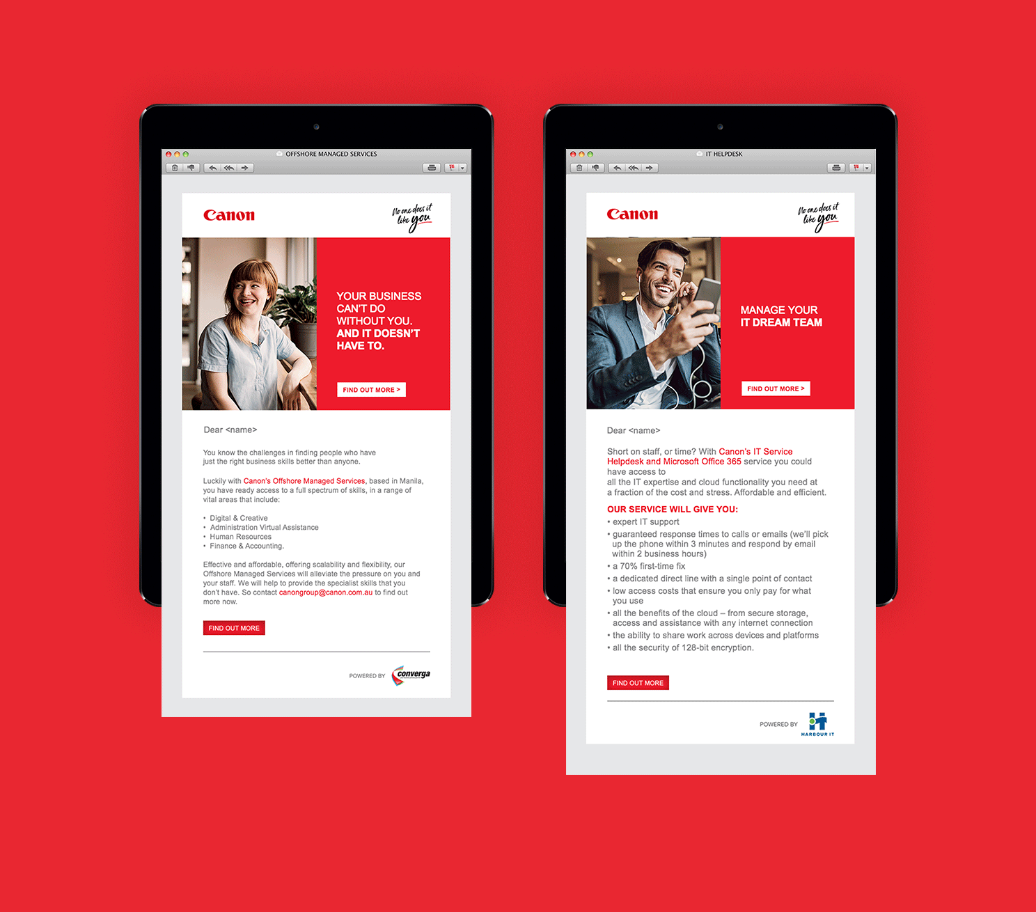 Canon Business Services is a B2B market leader in digital transformation, business process optimisation, cloud technologies, and secure IT managed services. These services sit under the the Canon consumer brand which has great emotional power and engagement. However, a lack of consistency of the canon brand was failing to connect with people in the same way they connect to consumer audiences. Refreshing its B2B offering through new brand positioning, the new platform lets Canon Business Services connect with its customers on a human level. The work drew on the strength of the Canon consumer brand, celebrating the power of the individual, the power of personal vision, and the difference one person can make in the world. In the case of Canon’s Business Services, this is expressed as ‘No one does it like you’.